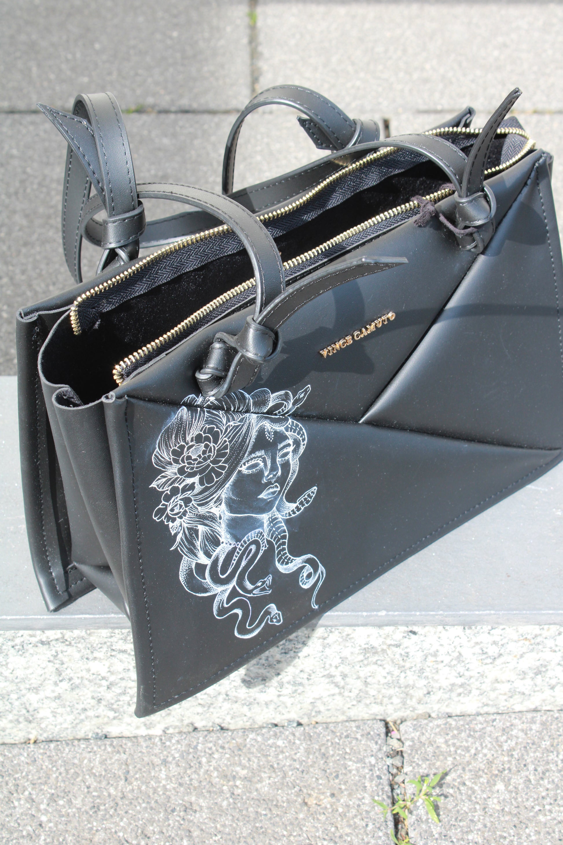 Unsere Taschen sind aus sehr hochwertige Lederimitate gefertigt durch die jeweiligen Modemarken und von uns per Hand tätowiert. Hinweis: "Dieses Stück existiert nur einmal und ist deshalb ein reines Unikat"